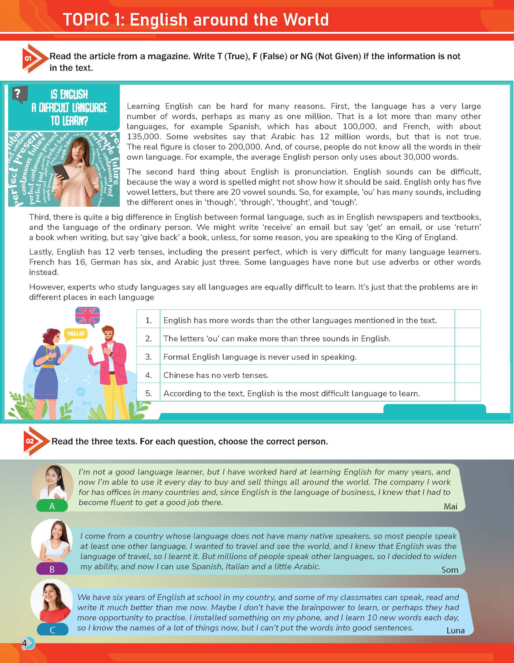 Nội dung do người bản xứ biên soạn, giúp học sinh nâng cao khả năng Đọc, Nghe và giao tiếp bằng tiếng Anh trong các tình huống thực tế