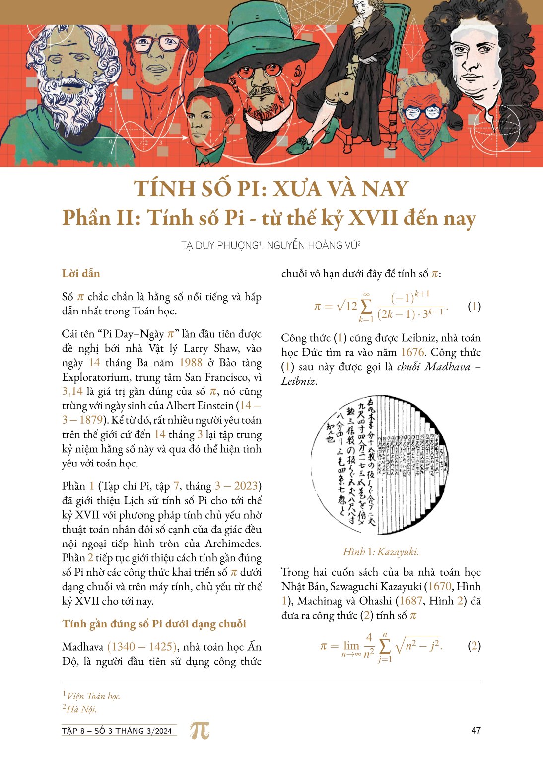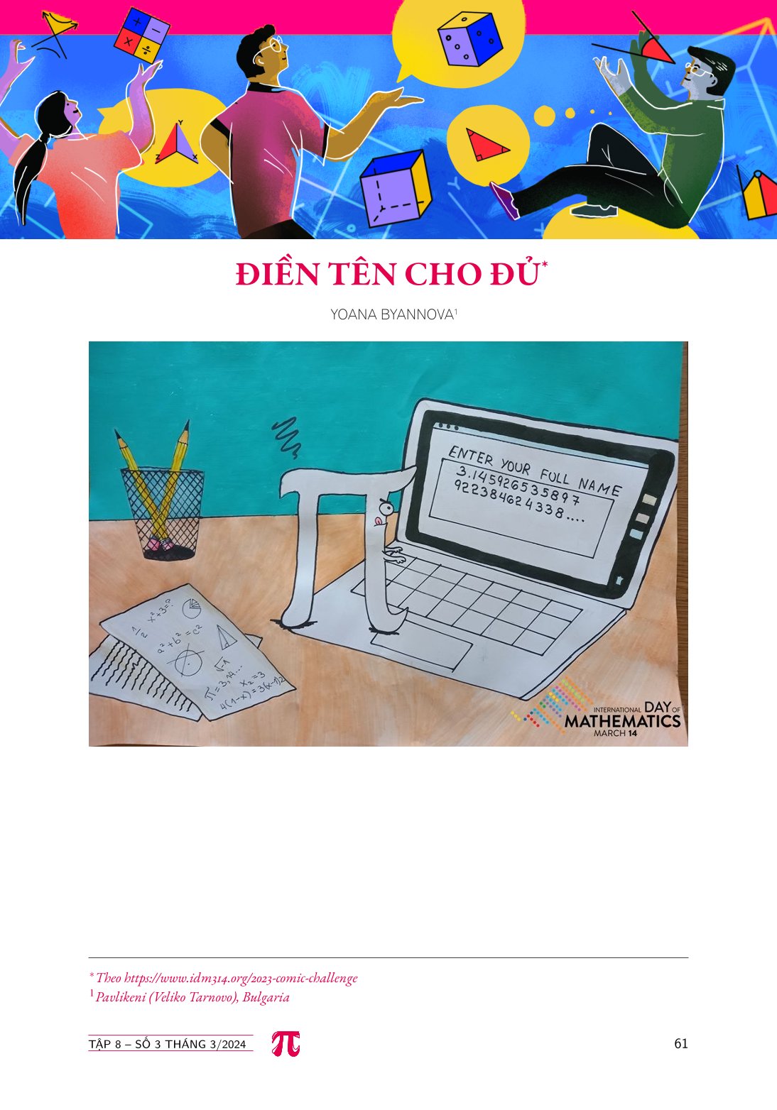 -Tác giả: Hội Toán Học Việt Nam -Nhà xuất bản: Tạp chí Pi -Nhà phát hành: Tạp chí Pi -Ngô ngữ: Tiếng Việt và Tiếng Anh -Số trang: 64 -Khổ 19 x 27cm -Hình thức bìa: Bìa mềm -Thời