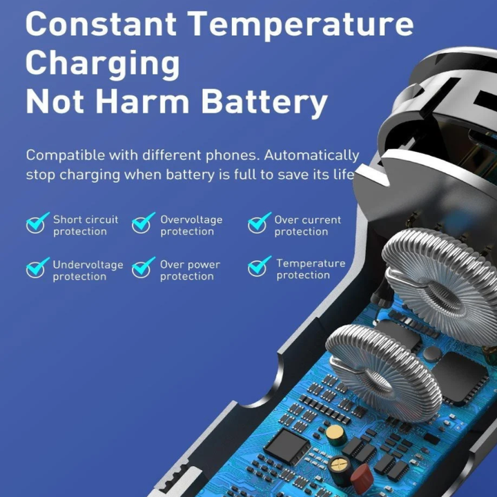 Tẩu Sạc Xe Ô Tô Có Màn Hình Led Hiển Thị - Công dụng: hai cổng sạc USB có thể sạc 2 thiết bị cùng 1 lúc, hỗ trợ tất cả thiết bị đầu