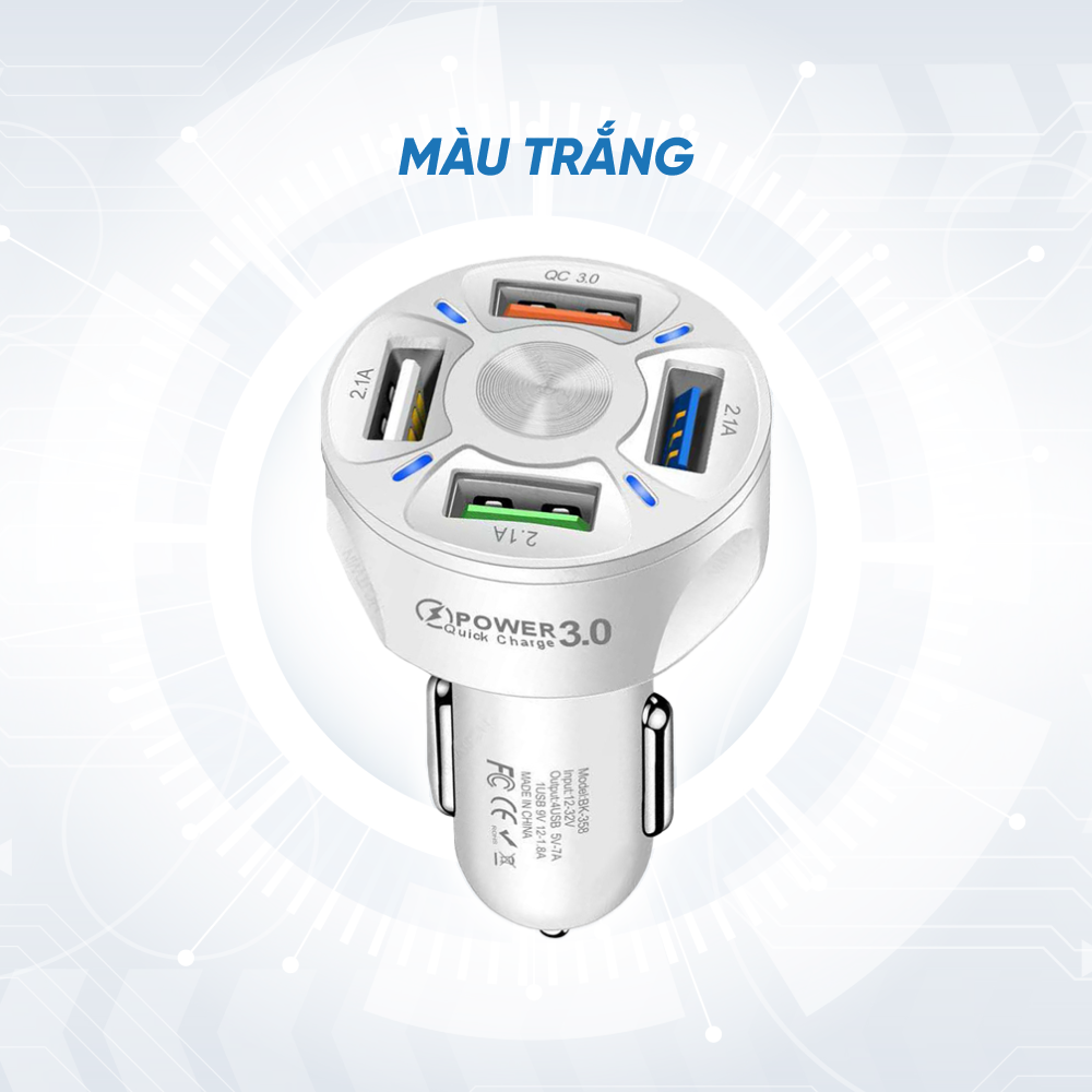 Tẩu Sạc Xe Ô Tô 4 Cổng USB Công Nghệ Sạc Nhanh QC 3.0A THÔNG TIN SẢN PHẨM: - Chất liệu: ABS - Các tính năng: Ổn định điện áp, Cắm và chạy, Chống