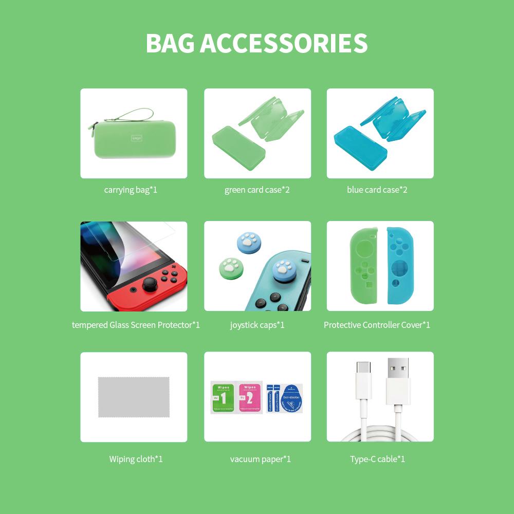 Mua tại TiktokFeatures: The bag stores Switch console,Switch game cards,cable,accessories,etc. Equipped with silicone protective cover,the accurate hole position gives you comfortable hold feeling. The Joystick design is cute and soft,durable and dirty-resistant,bring you good hand feeling. With four boxes for storing game cards,protect your Switch cards from losing. Withtempered glass screen protector and cleaning,protect your screen from scratch-resistant. Specification: Brand: IPEGA Color: Green Package Size: 26.212.54.5cm/10.34.91.8in Package Weight: 322g/11.4oz Package List: 1Carrying Storage Bag 2Game Card Case 2Joystick Cap 2Protective Controller Cover 1Type-C Cable 1 Tempered Glass Screen Protector 1*Cleaning Pack