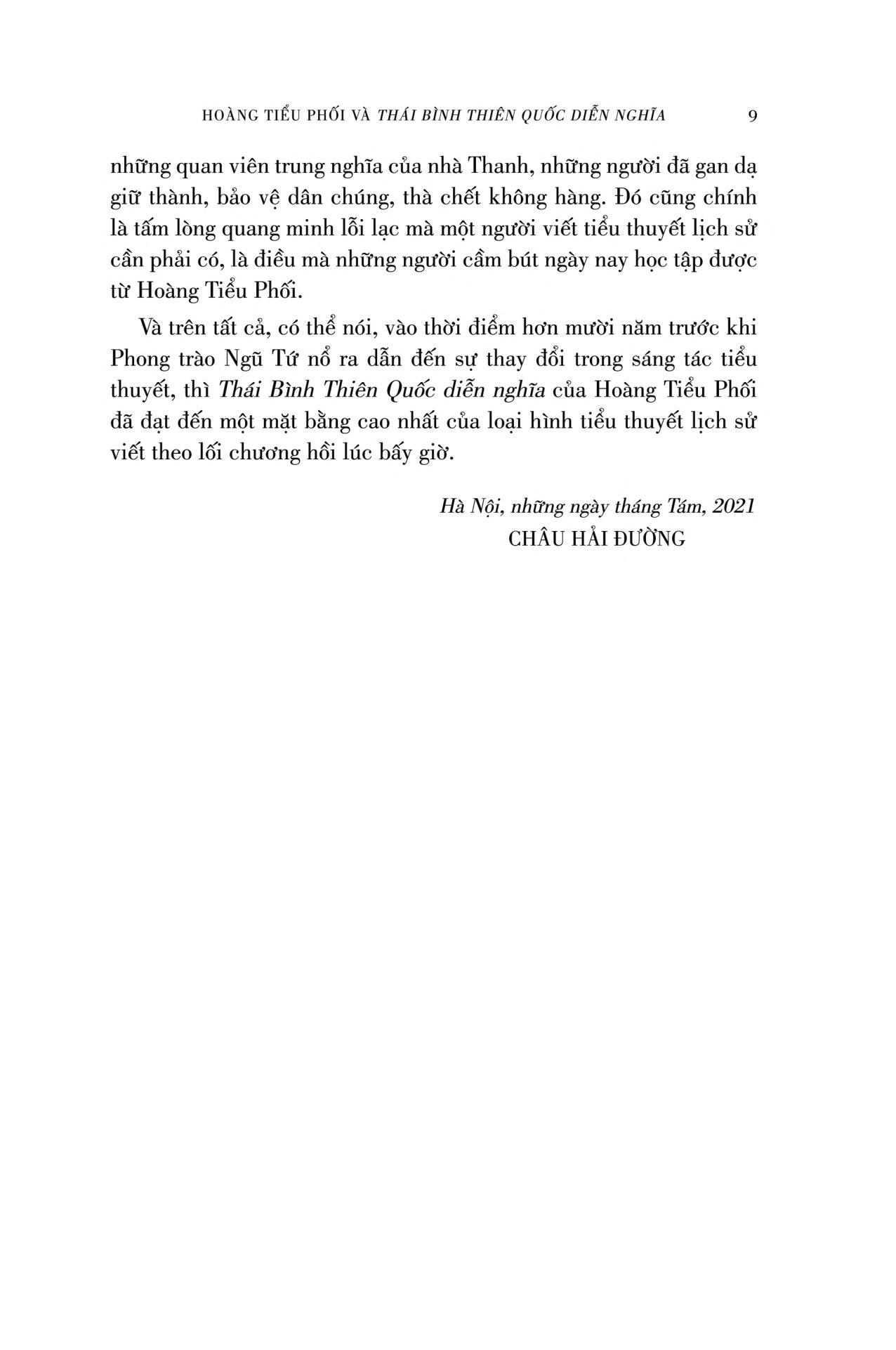 Vào thời điểm hơn mười năm trước khi Phong trào Ngũ Tứ nổ ra dẫn đến sự thay đổi trong sáng tác tiểu thuyết, thì Thái Bình Thiên Quốc diễn nghĩa đã đạt đến một mặt bằng cao nhất của loại hình tiểu thuyết lịch sử viết theo lối chương hồi lúc bấy giờ.