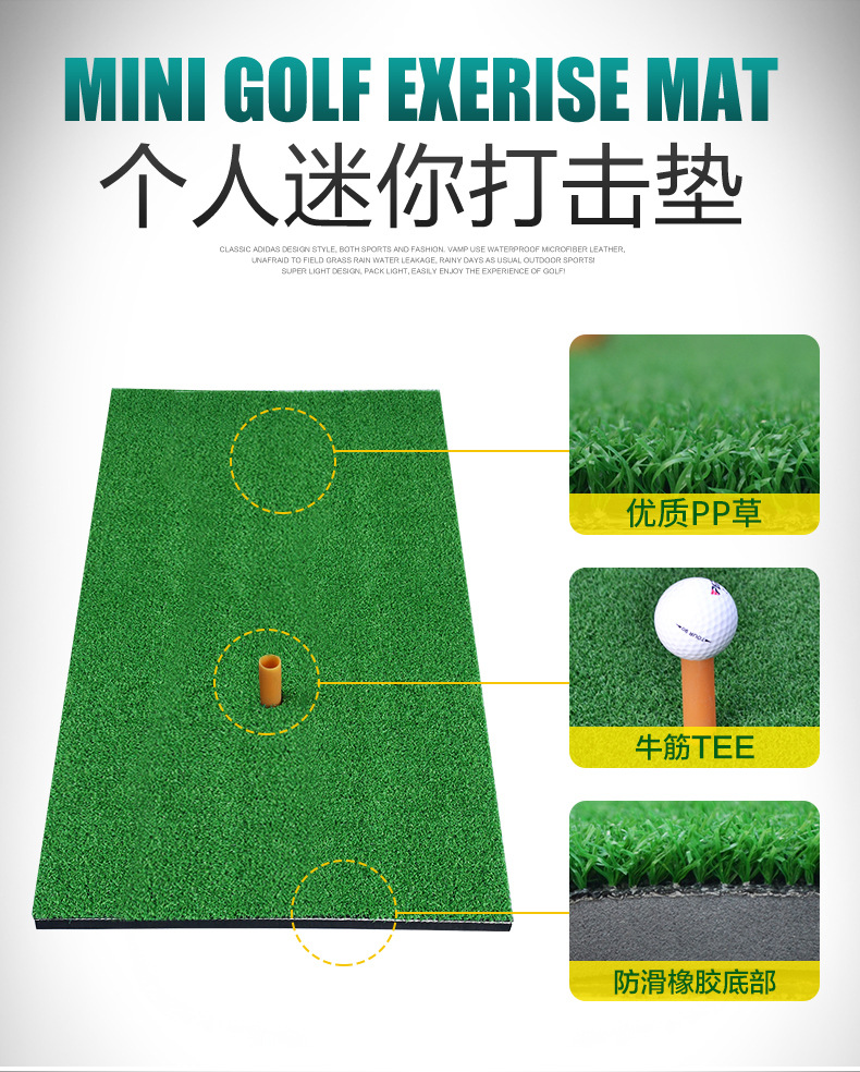 Tấm thảm có thể xử lý từ cách tiếp cận đến toàn bộ cú đánh Miếng bọt biển cao su gắn dưới đáy làm mềm tác động tại thời điểm đánh. Thống số kỹ thuật: