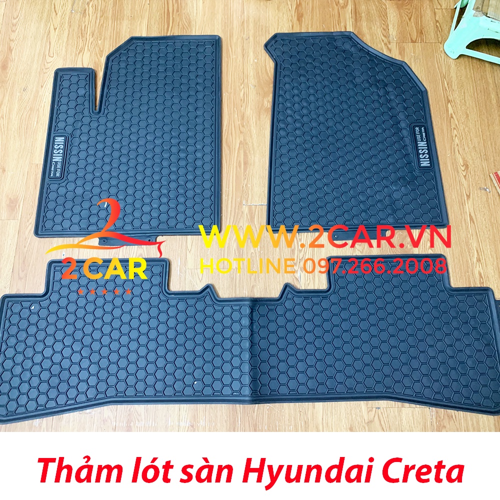 Thảm sàn, Thảm lót sàn xe Hyundai CRETA 2022 2023 cao su đúc, vân tổ ong, không mùi,