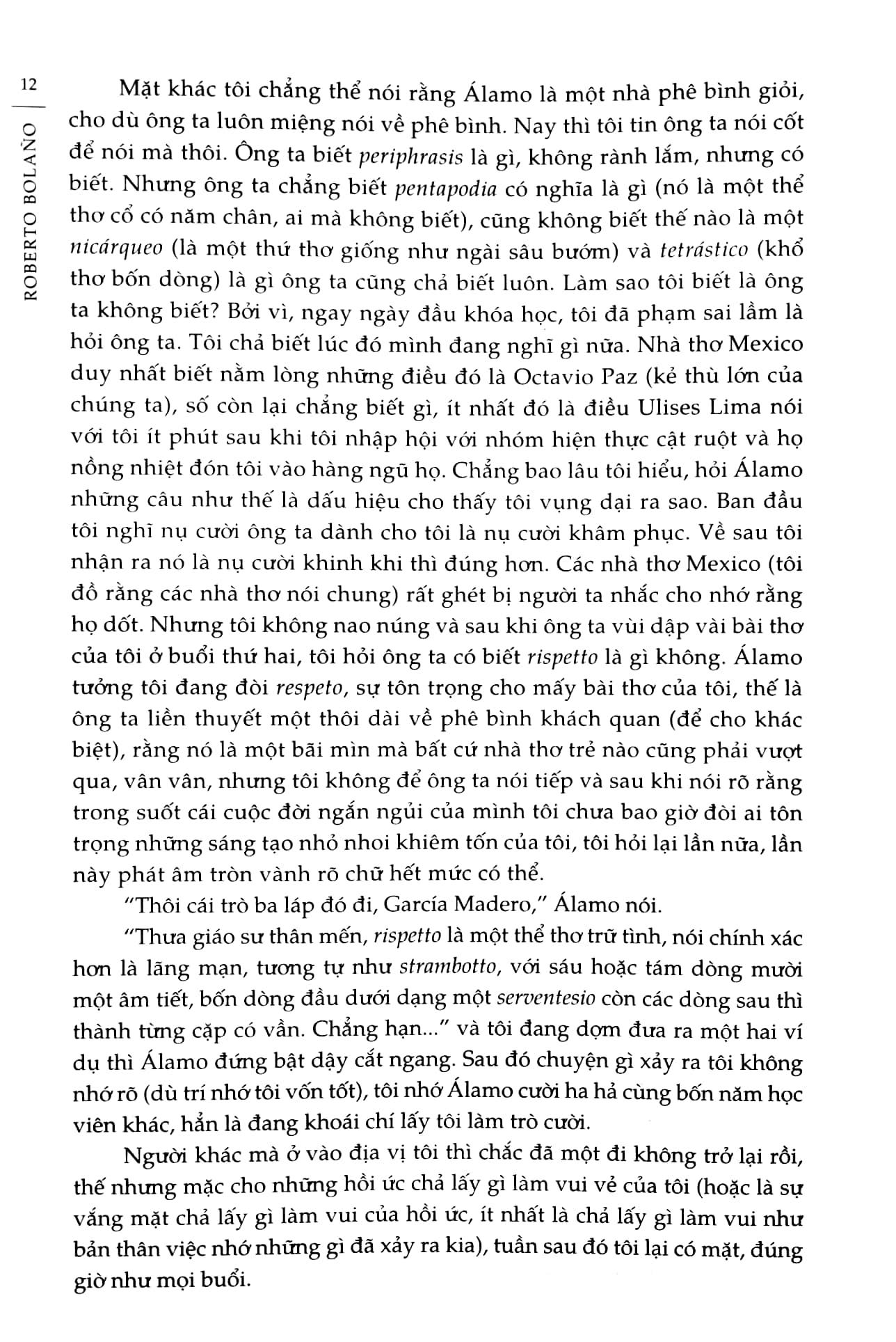 Đây là chuyện về các thám tử. Những thám tử kiêm nhà thơ, truy tìm dấu vết một người mất tích – một nhà thơ khác. Một cuộc truy tìm trải suốt nhiều năm, diễn ra khắp ba châu lục nhưng trước hết là Mỹ la tinh, miền đất mênh mông của vô vàn phức tạp, nhộn nhạo, bạo tàn và đẹp, với hầu như mọi thứ trên đời: đế quốc, cách mạng, độc tài, loạn lạc, rượu, túy, cảnh sát, mại dâm, tội phạm, nhà thơ. Nhà thơ, một nòi lạ, ngu ngơ, rồ dại, đẹp, nảy nòi một cách khó hiểu và hữu cơ trên bối cảnh tạp nham đầy bất trắc này, và, xuyên suốt câu chuyện dài, ngồn ngộn chi tiết và cảm xúc, tán xạ qua hàng chục giọng khác nhau, hai nhà thơ đơn độc đi tìm nhà thơ đơn độc thứ ba, như hành trình tìm lại một thành viên của cái bộ tộc hiếm gồm những kẻ yêu cái đẹp và đau đời đó, hầu khôi phục một mảnh nhỏ của bộ tộc ấy.