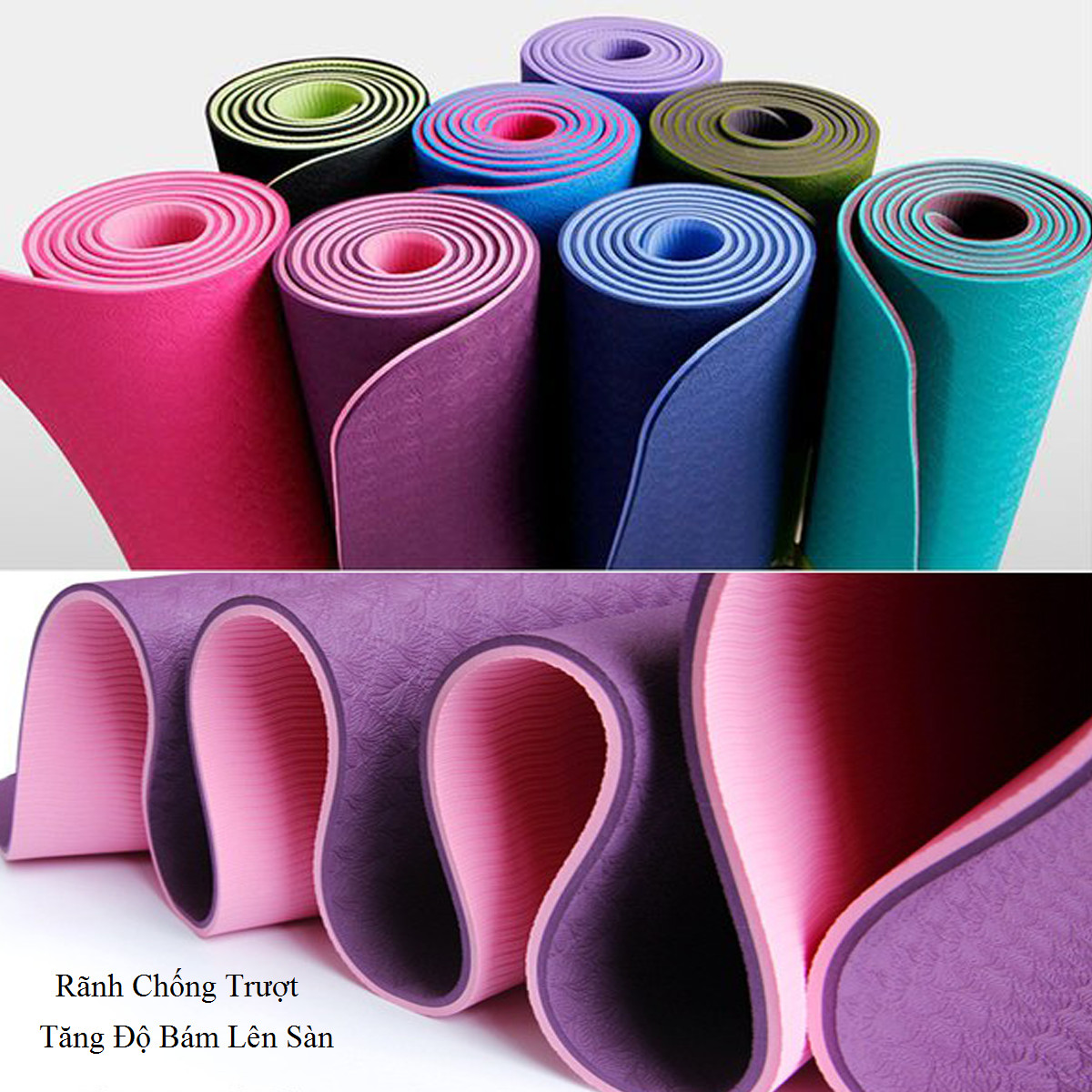 Thảm tập yoga Chất liệu TPE 8mm hàng loại 1 chống trơn trượt .