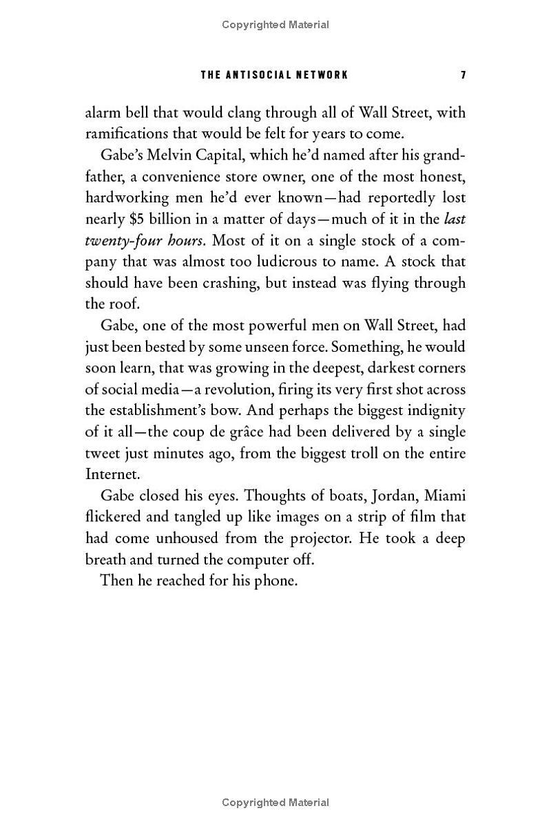 In thrilling, pulse-pounding prose, THE ANTISOCIAL NETWORK offers a fascinating, never-before-seen glimpse at the outsize personalities, dizzying swings, corporate drama, and underestimated American heroes and heroines who captivated the nation during one of the most volatile weeks in financial history. It’s the amazing story of what just happened—and where we go from here.