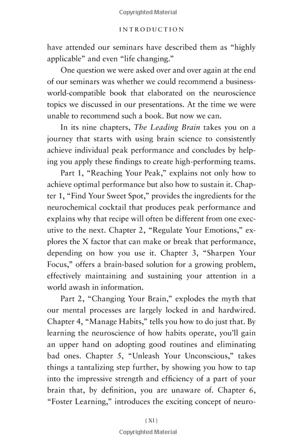The Leading Brain A cutting-edge guide to applying the latest research in brain science to leadership - to sharpen performance, encourage innovation, and enhance job satisfaction. **Featured on NPR, Success, Investor Business Daily, Thrive Global,