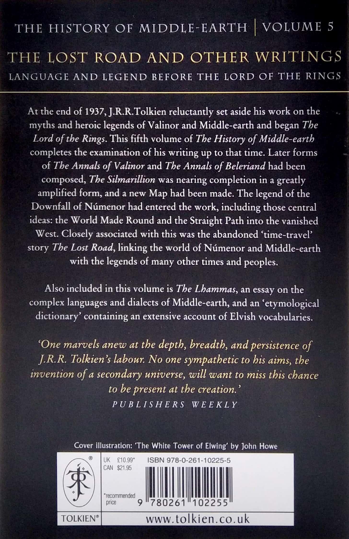 This fifth volume of The History of Middle-earth completes the examination of his writing up to that time. Later forms of The Annals of Valinor and The Annals of Beleriand had been composed, The Silmarillion was nearing completion in a greatly amplified form, and a new Map had been made. The legend of the Downfall of Numenor had entered the work, including those central ideas: the World Made Round and the Straight Path into the vanished West. Closely associated with this was the abandoned 'time-travel' story The Lost Road, linking the world of Numenor and Middle-earth with the legends of many other times and peoples.