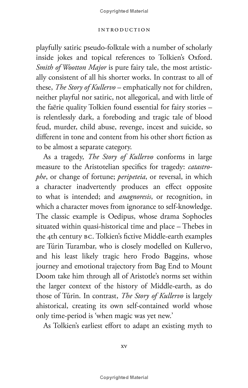 Tolkien wrote that The Story of Kullervo was 'the germ of my attempt to write legends of my own', and was 'a major matter in the legends of the First Age'; his Kullervo was the ancestor of Turin Turambar, tragic incestuous hero of The Silmarillion. In addition to being a powerful story in its own right, The Story of Kullervo - published here for the first time with the author's drafts, notes and lecture-essays on its source-work, The Kalevala, is a foundation stone in the structure of Tolkien's invented world.