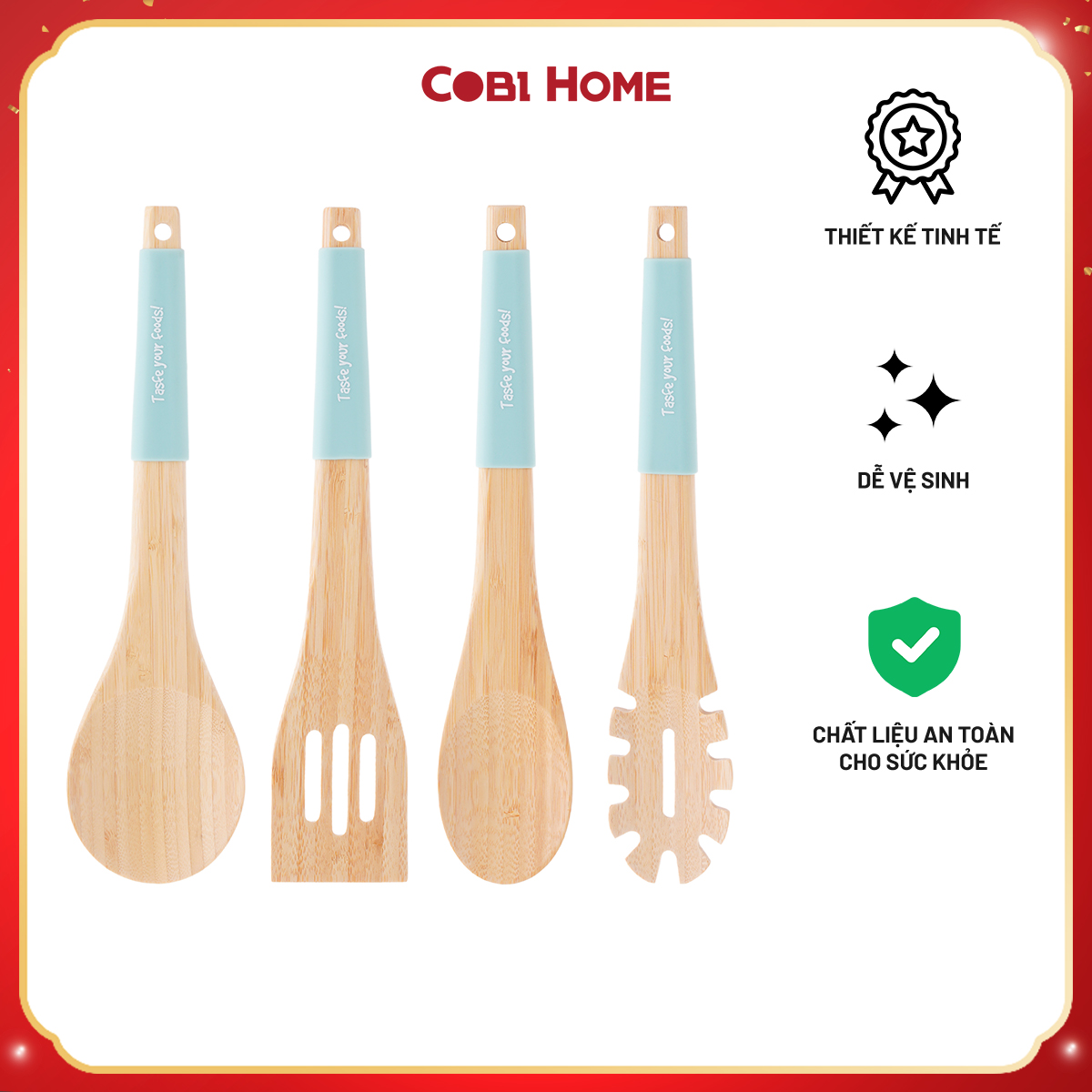 Tên sản phẩm: Bộ dụng cụ bếp 2 món : Đũa chiên : 27 x 0,9 x 0,3 cm Sạn xào: 26 x5 x 1.2 cm Sản phẩm đạt chất lượng xuất khẩu, sản phẩm