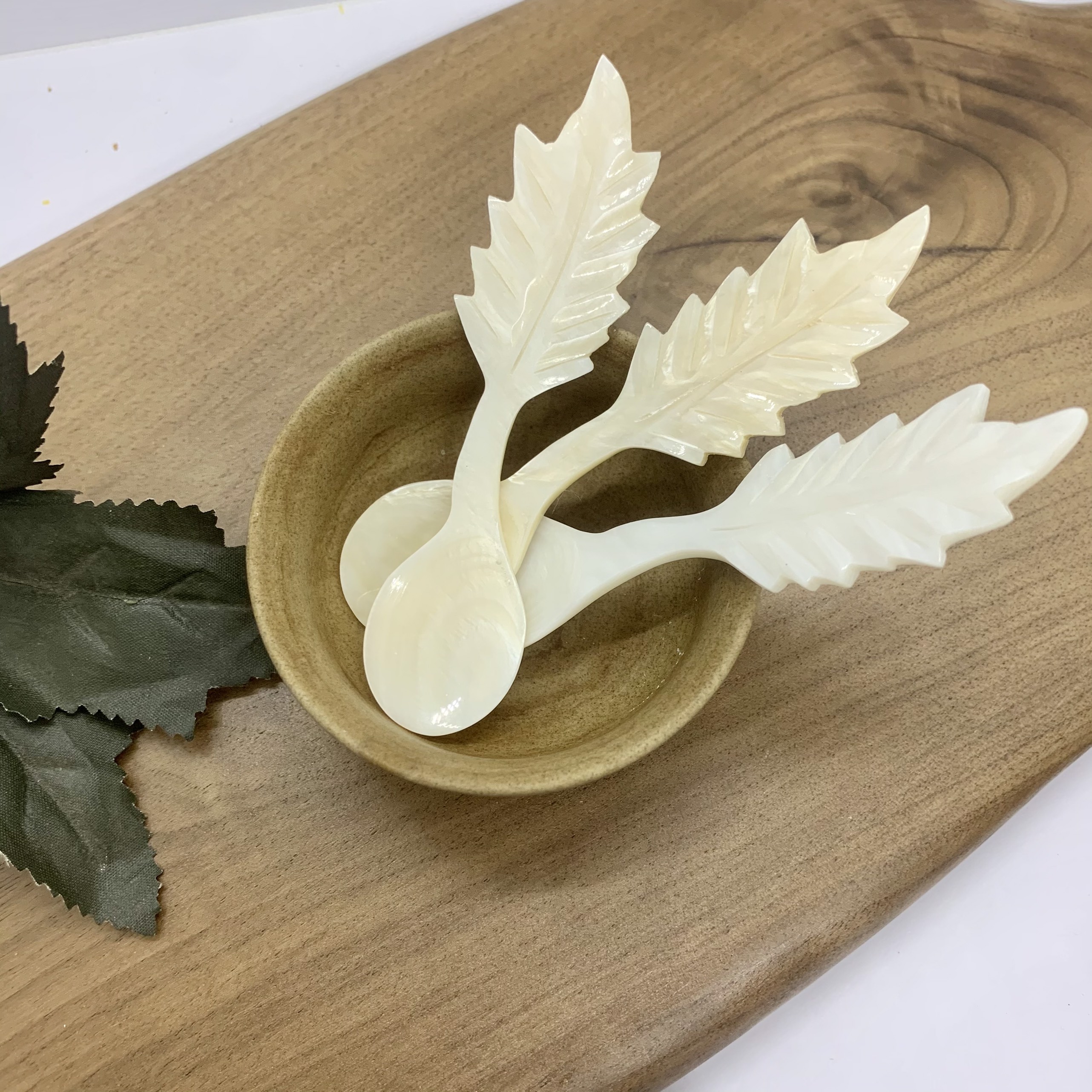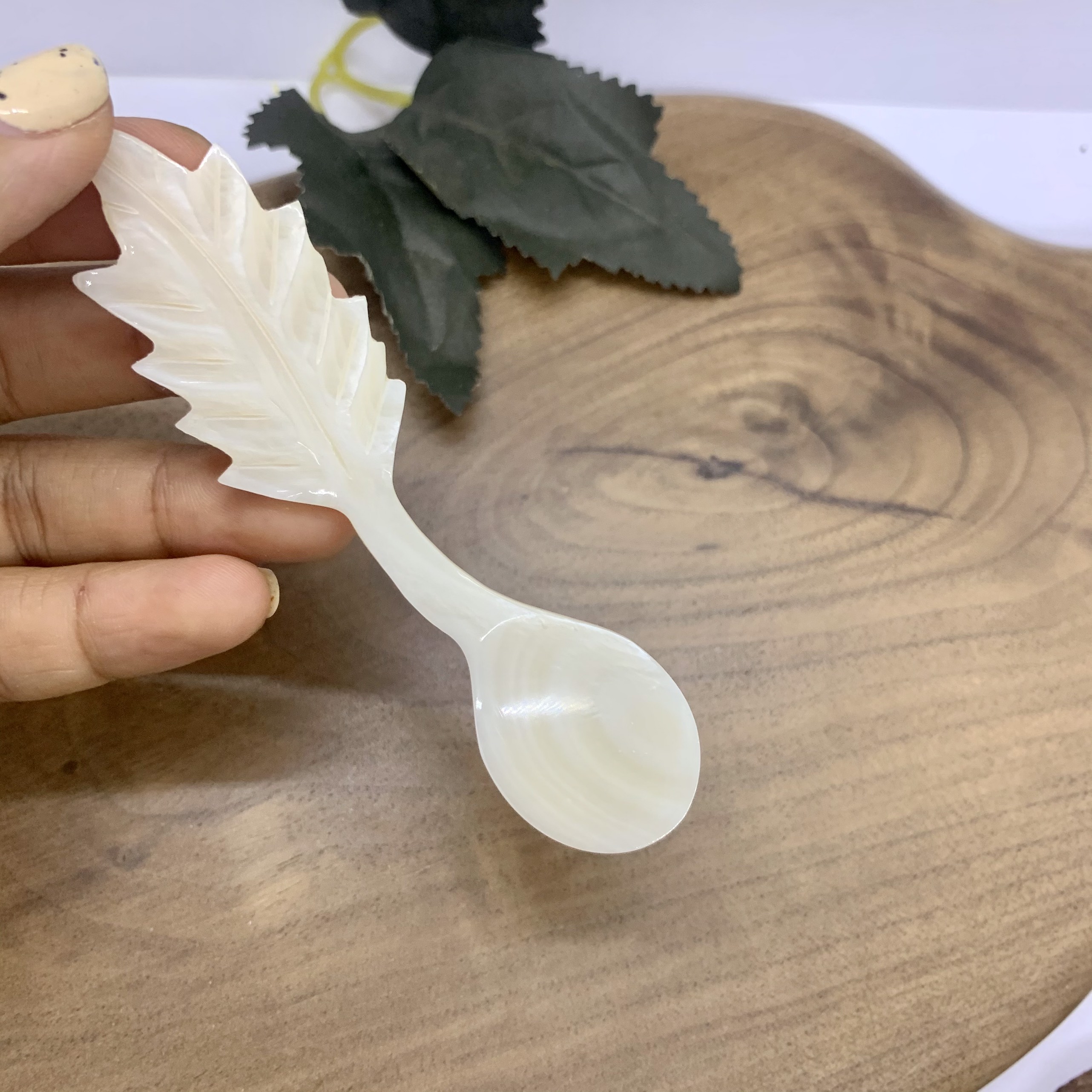 Phụ kiện thìa vỏ xà cừ vừa sử dụng chụp ảnh hoặc decor trang trí cho nhà hàng, món ăn.