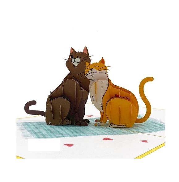 ✨Thiệp 3D Pop Up Đôi Mèo Tình Yêu – Thiệp Valentine, Thiệp Sinh Nhật, Thiệp Lãng Mạn Độc Đáo