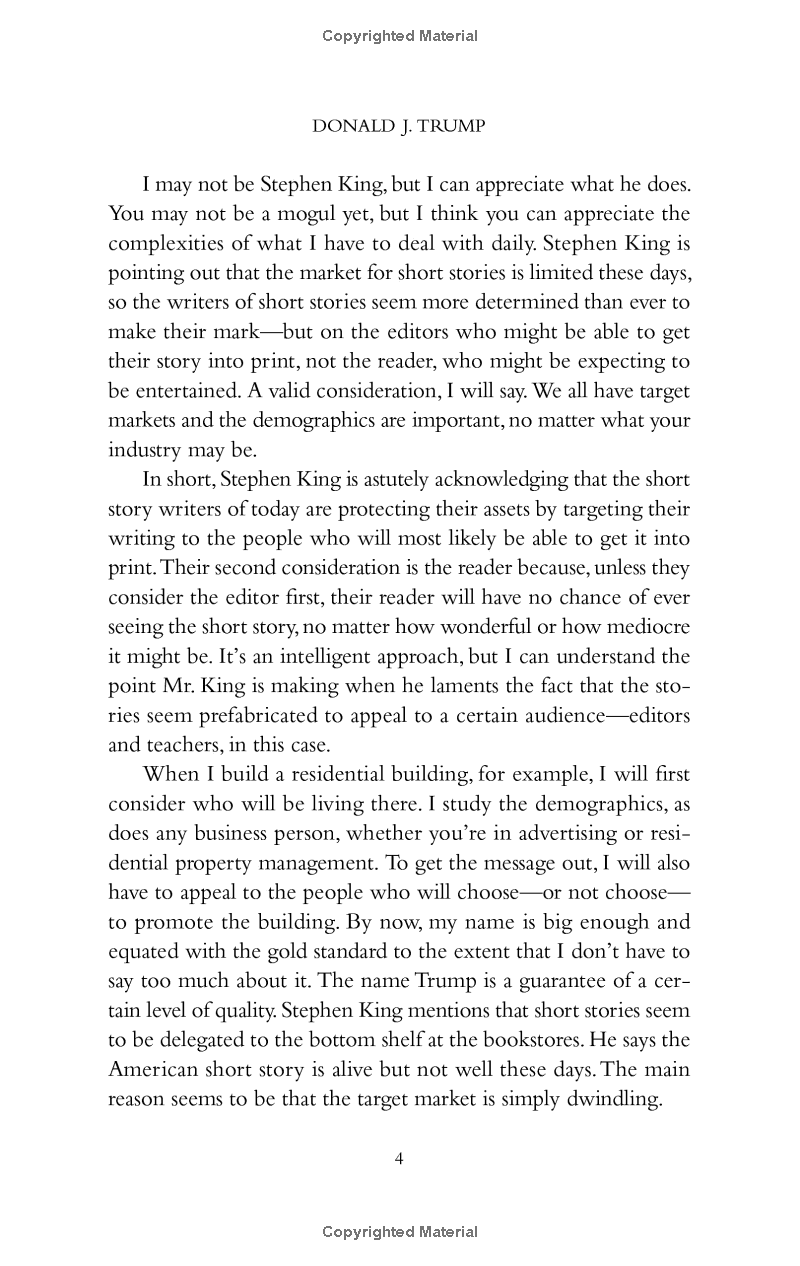 Over the years, President Donald Trump has written many bestselling books, but he has also written shorter essays that encompass his philosophy about how to live life to the fullest, both personally and professionally. In these pieces, which have been personally selected by Trump for this book, he gives his special perspective in what amounts to an informal education about success in business and in life. With a foreword by Rich Dad, Poor Dad, author Robert Kiyosaki, Trump's business acumen is on full display in such essays as: