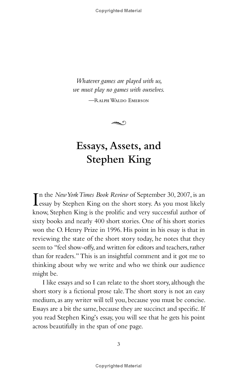 Keep the Big Picture in Mind Essays, Assets, and Stephen King Imagination: A Key to Financial Savvy Financial Literacy Think Like a Genius How to Get Rich