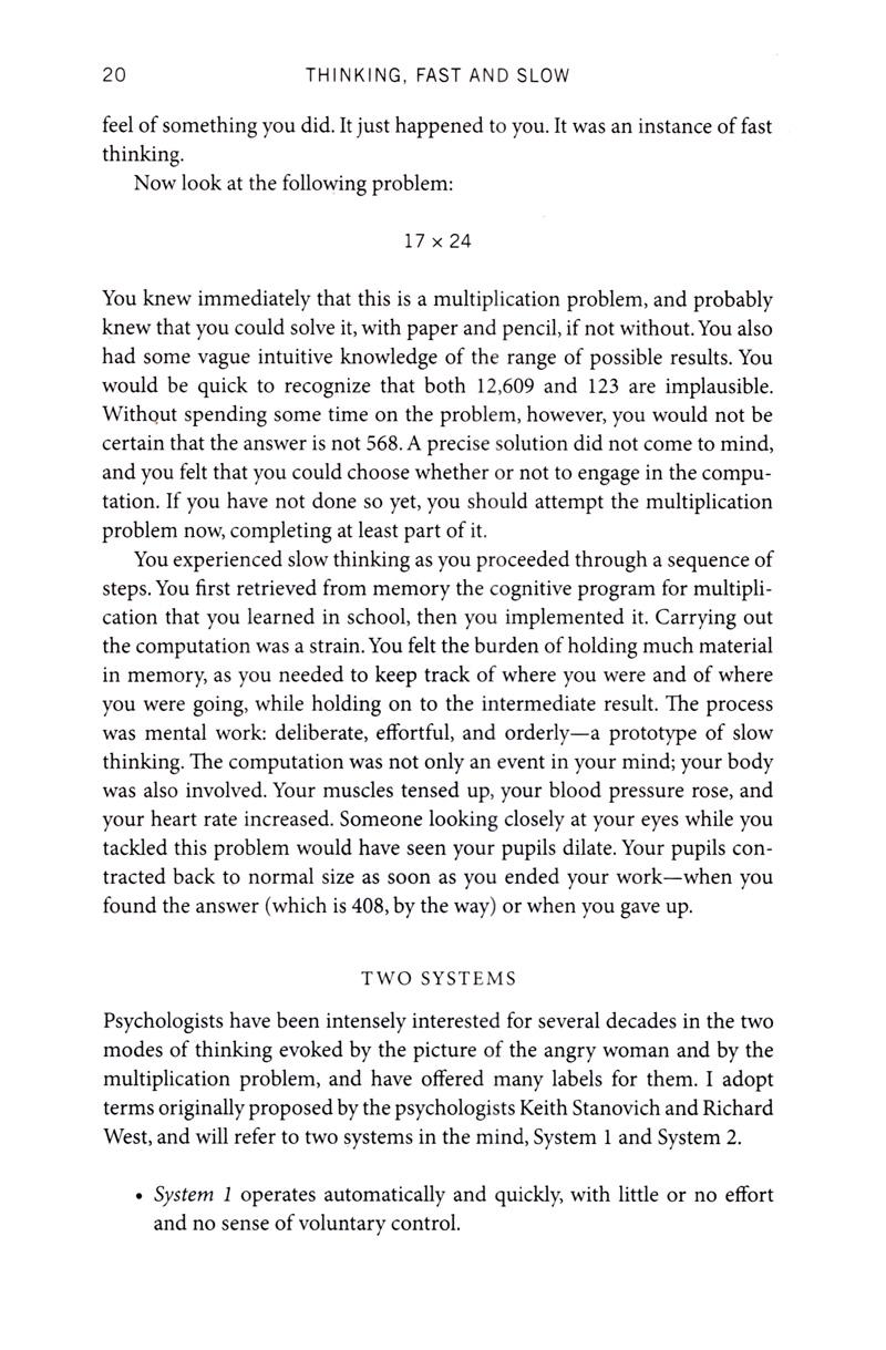 In the international bestseller, Thinking, Fast and Slow, Daniel Kahneman, the renowned psychologist and winner of the Nobel Prize in Economics, takes us on a groundbreaking tour of the mind and explains the two systems that drive the way we think. System 1 is fast, intuitive, and emotional; System 2 is slower, more deliberative, and more logical. The impact of overconfidence on corporate strategies, the difficulties of predicting what will make us happy in the future, the profound effect of cognitive biases on everything from playing the stock market to planning our next vacation—each of these can be understood only by knowing how the two systems shape our judgments and decisions.