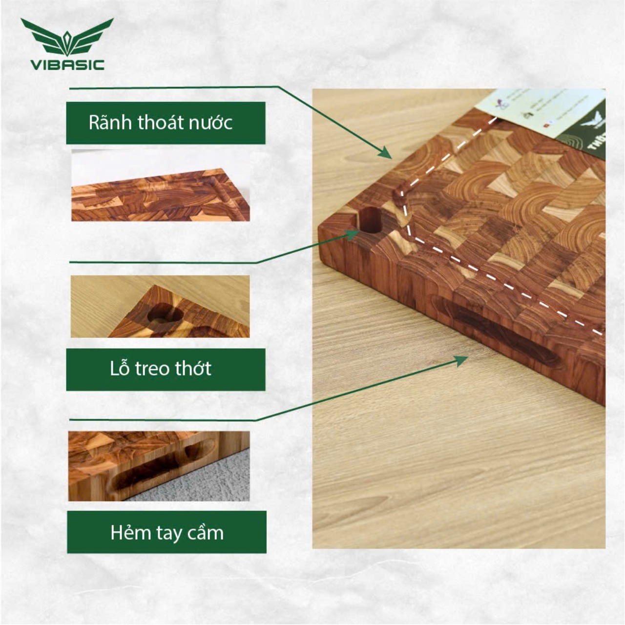 ✨Thớt gỗ Teak Vibasic ghép dựng block, kích thước 300x200x25mm có lỗ treo - Hàng chính hãng Bộ Quốc Phòng