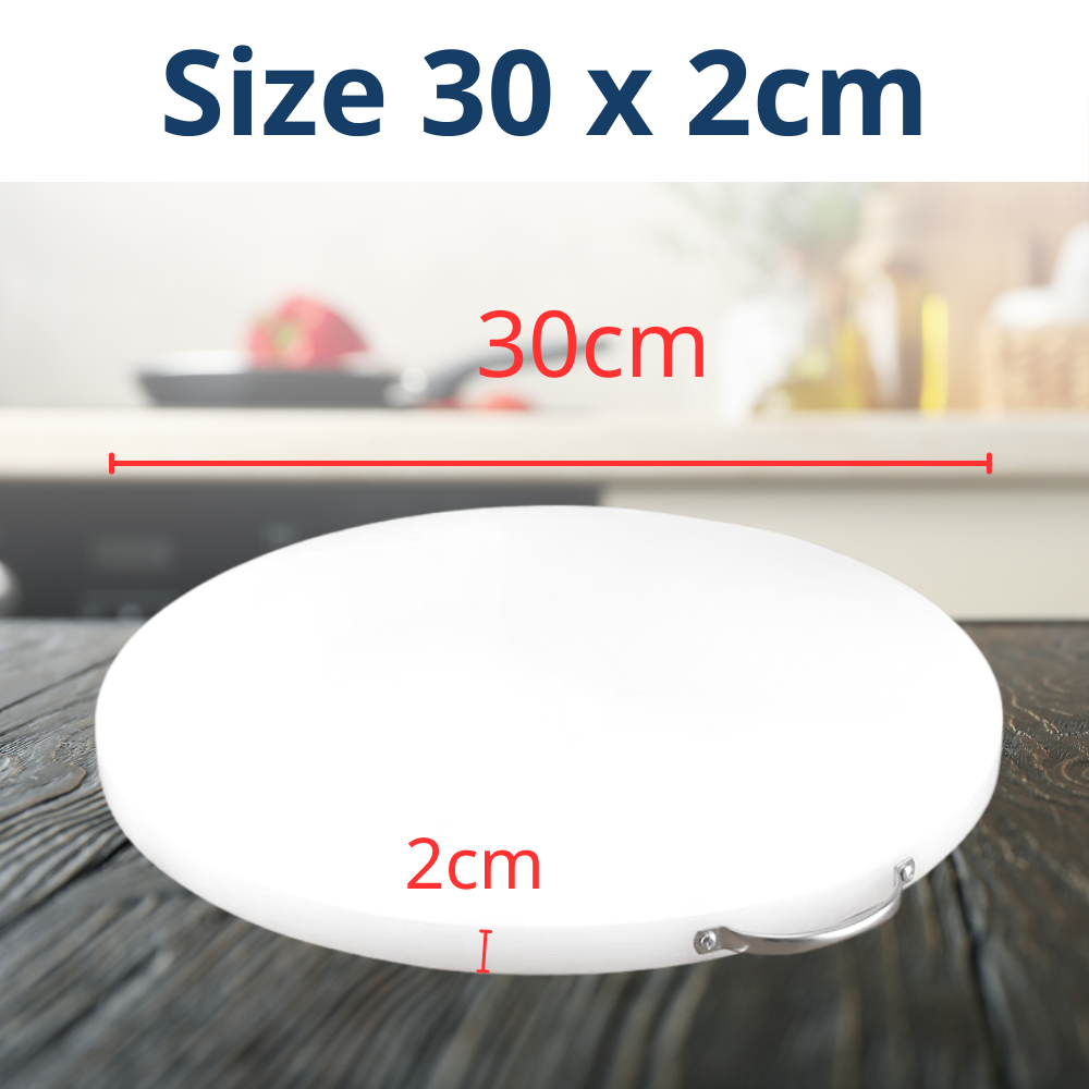 THỚT NHỰA TRÒN CHO GIA ĐÌNH, NHÀ HÀNG, QUÁN ĂN CÔNG DỤNG SẢN PHẨM - Dùng để thái, chặt, cắt, băm thực phẩm: rau củ, thịt, cá, trái cây… - Chống thấm nước, không hút