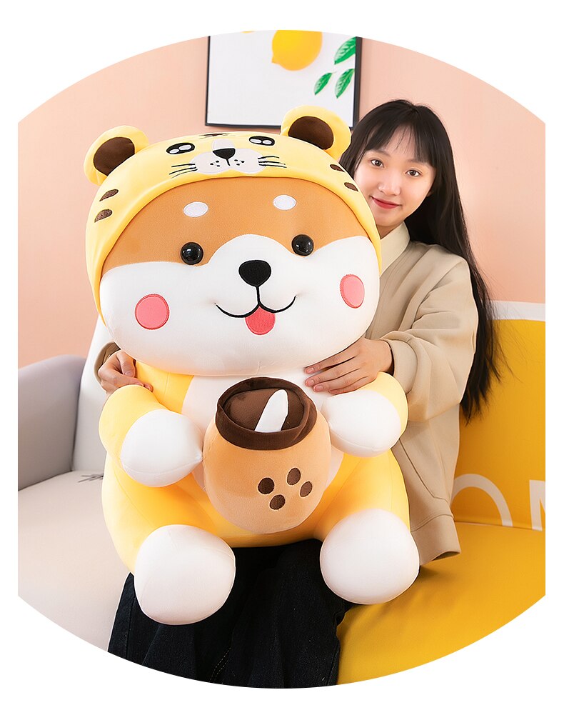 ✨Thú nhồi bông shiba cosplay hổ ôm trà sữa - Size từ 40cm đến 55cm - Quà tặng shiba ôm trà sữa nhồi bông êm mịn dễ thương - Gối ôm mềm mịn cho bé