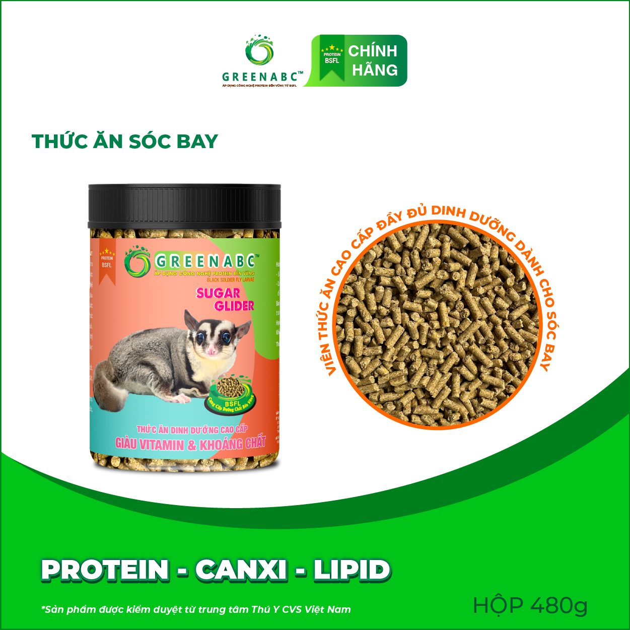 Mua tại TiktokGREENABC - THỨC ĂN SÓC BAY - LÔNG MƯỢT, TĂNG CƯỜNG SỨC KHỎE GREENABC là thức ăn cao cấp dành cho SÓC BAY. Đặc biệt sản phẩm GREENABC được sản xuất theo phương pháp Áp dụng công nghệ PROTEIN bền vững rất giàu PROTEIN – CANXI – LIPID có trong BSFL, đã được Mỹ (AAFCO) và EU chấp nhận đưa vào công thức cho ngành sản xuất thức ăn cho vật nuôi. Sản phẩm GREENABC cung cấp cácgiá trị dinh dưỡng bền vững cho thú cưng, giúp cho Sóc Bay: