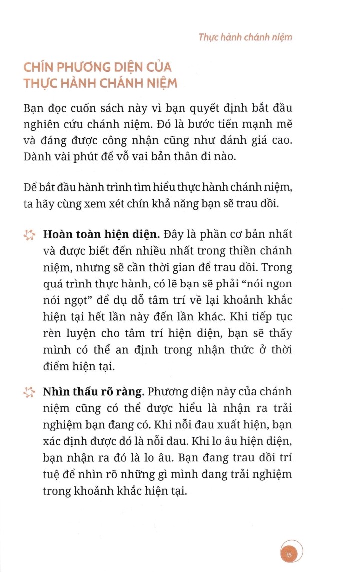 Bạn từng hành thiền, nhưng không thấy hiệu quả? Bạn không biết phải lựa chọn, phải hiểu như thế nào về chánh niệm giữa quá nhiều thông tin và sách bảo viết về thiền? Hãy đến với THỰC HÀNH CHÁNH NIỆM của Matthew Sockolov. Sách giới thiệu 75 bài thực hành chánh niệm đúc kết từ quá trình hành thiền cùng nhiều năm giảng dạy thiền của tác giả, giới thiệu những cách tiếp cận chánh niệm đơn giản mà hiệu quả, phù hợp với nhiều tính cách và lối sống khác nhau. Mỗi bài tập được thiết kế chi tiết, tỉ mỉ, giúp người đọc dễ dàng nắm bắt và thực hiện theo. THỰC HÀNH CHÁNH NIỆM là câm nang không thể thiếu dành cho những người muốn cải thiện sức khỏe tinh thần và tìm thấy bình yên trong đời sống thường nhật.