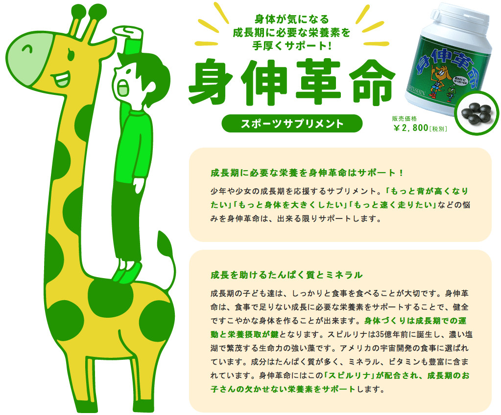 - Thành phần sắc tố: β-carotene, zeaxanthin, chlorophyll a, phycocyanin. GIỚI THIỆU VỀ TẢO TĂNG CHIỀU CAO SHINSHIN KAKUMEI NHẬT BẢN Hãng sản xuất: OFC Co., Ltd Nhật Bản