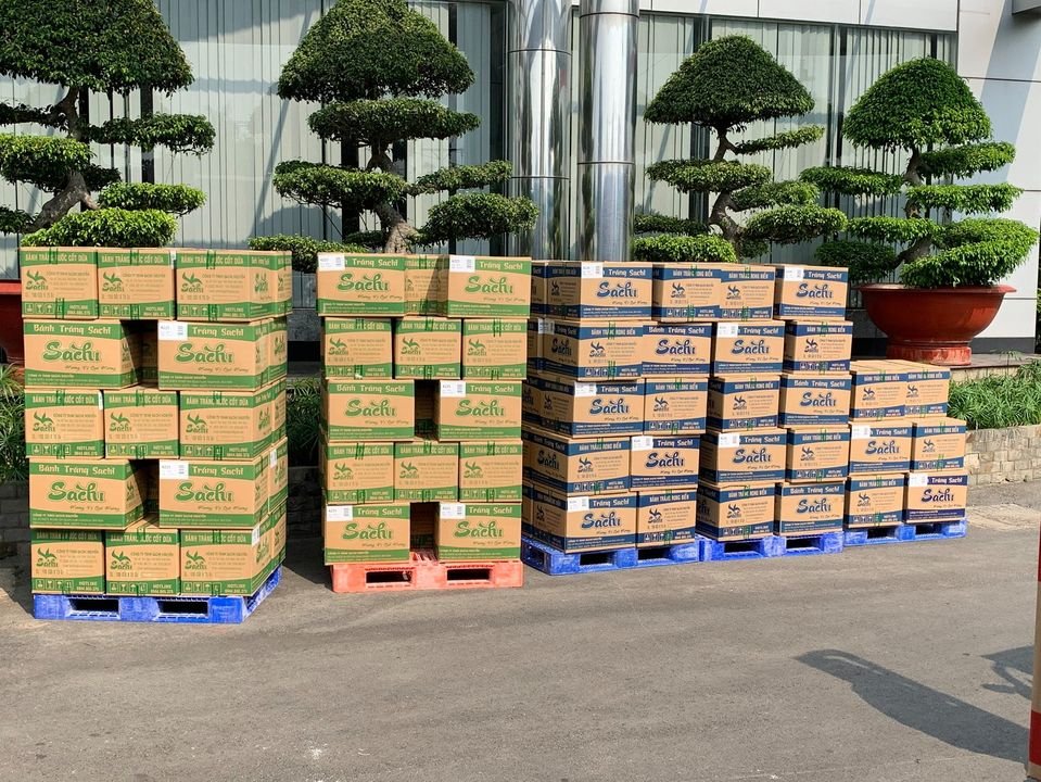 Sản phẩm bánh tráng dừa nướng tẩm khô bò, phô mai, chà bông gà, khô mực, tôm tẩm, rong biển của Sachi với các thành phần chính là bánh tráng dừa, nguyên liệu và nhờ