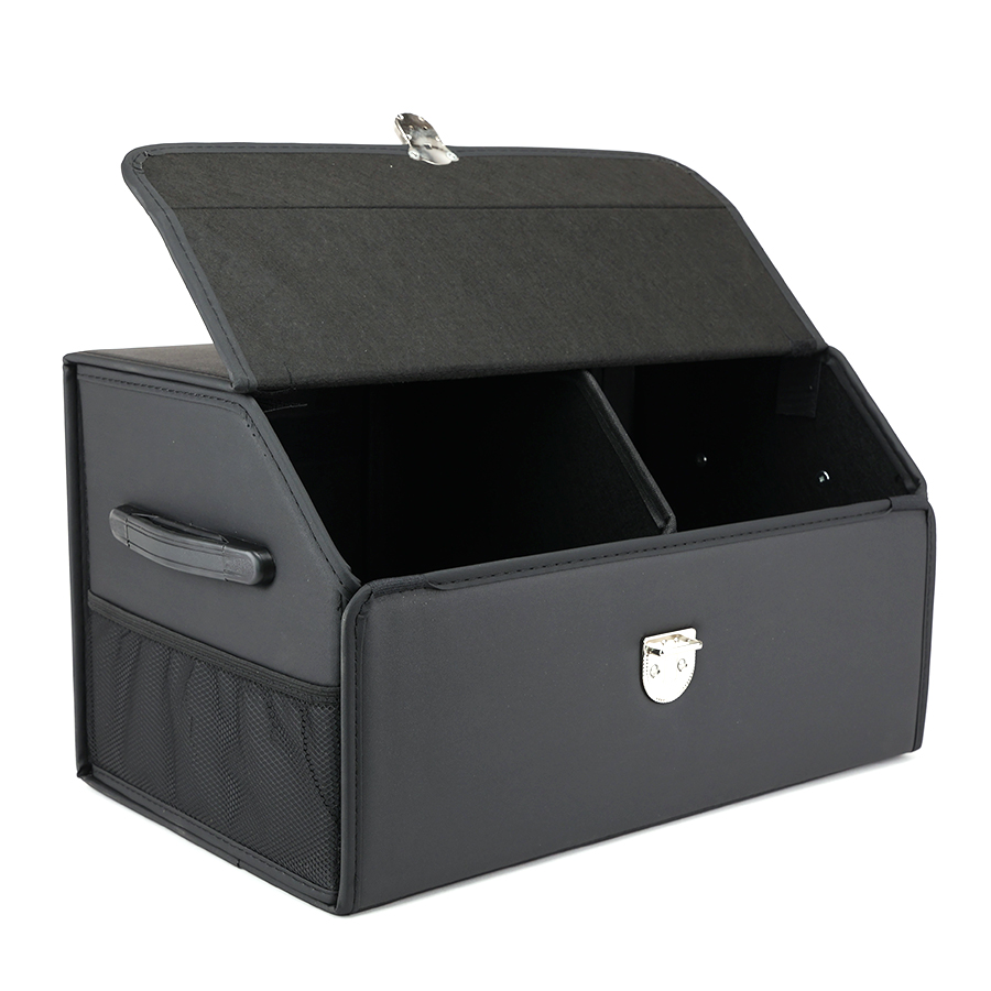 - Thùng Đựng Đồ Đa Năng Cốp Sau Ô Tô Bọc Da Cao Cấp Có Nắp Gấp Gọn Gàng Chứa Được Nhiều Đồ được làm từ chất liệu da PU sang trọng lại dễ dàng lau chùi và vệ sinh.