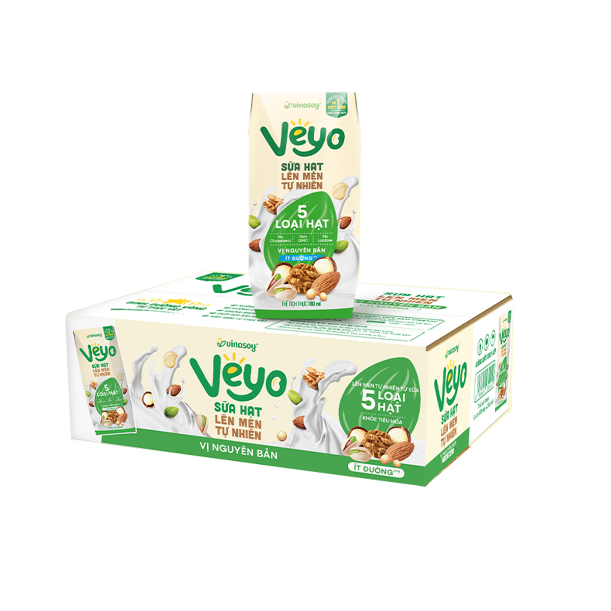 - Veyo Sữa hạt lên men tự nhiên vị Nguyên bản Ít đường được lên men tự nhiên từ sữa 5 loại hạt giàu dinh dưỡng: Hạnh nhân, Óc chó, Mắc ca, Đậu nành, Dẻ cười bằng chủng men thuần khiết, chuyên biệt từ Châu Âu, Ít đường, không cholesterol, không lactose, không biến đổi Gen, hỗ trợ tiêu hóa tốt hơn,Kết hợp vị bùi béo từ hạt cùng vị chua ngọt thanh thanh tự nhiên mang đến hương vị độc đáo, mới lạ, vừa ngon vừa khỏe từ bên trong mà thân thiện với môi trường.