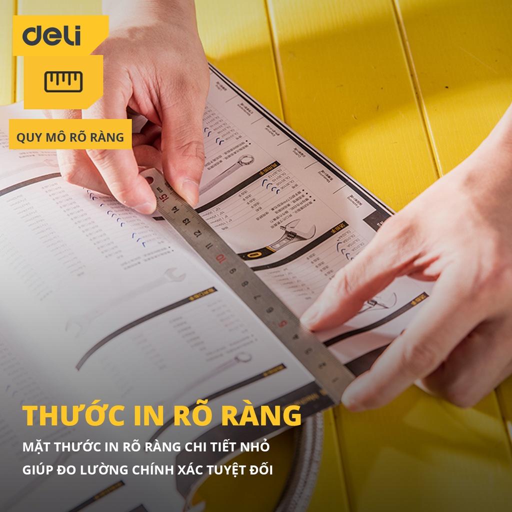 - Hãng sản xuất: Deli - Mã sản phẩm: DL8015/8/8462/4638464 TÍNH NĂNG SẢN PHẨM: - Vạch đo chính xác, rõ ràng - Chất liệu Thép chống mòn, chống gỉ - Thước được xử lí mờ,