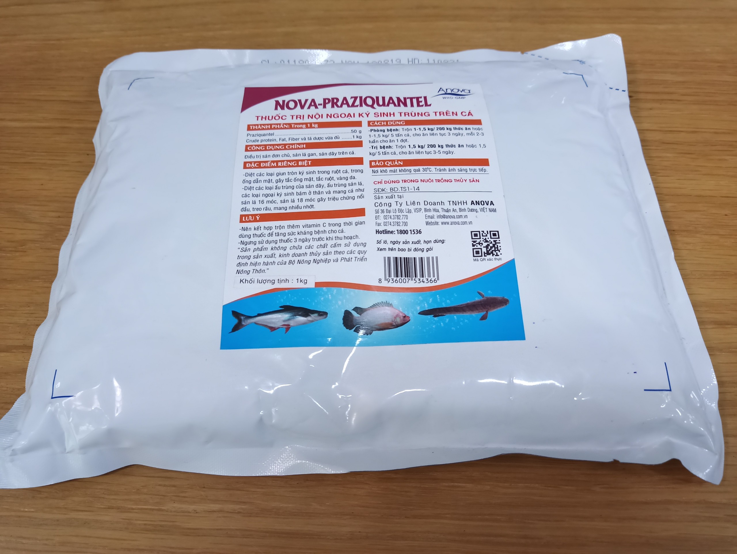 Mua tại TiktokThuốc Ngăn Ngừa Nội – Ngoại Ký Sinh Trùng Trên Cá Nova – Praziquantel Mã hàng: Nova – Praziquantel Hãng sản xuất: Anova – Việt Nam Quy cách: 1kg/gói THÀNH PHẦN: