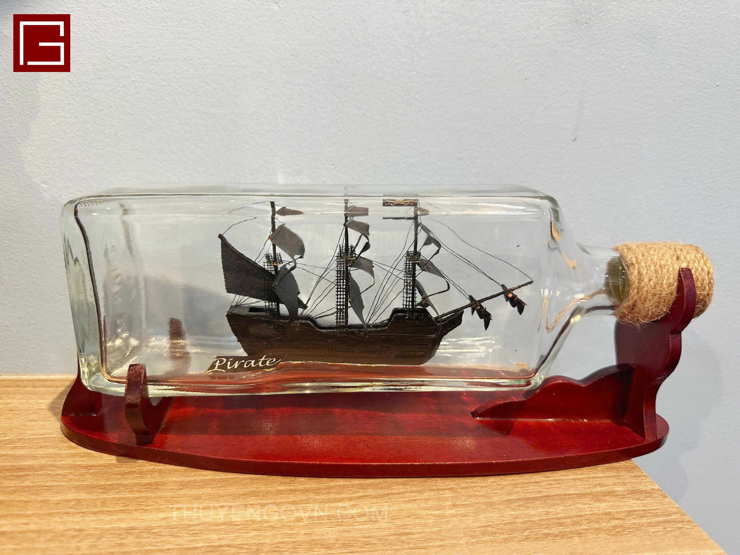 ✨Thuyền chai trang trí, thuyền chai dáng vuông phong thủy, thuyền gỗ trang trí, decor phòng họp, bàn làm việc