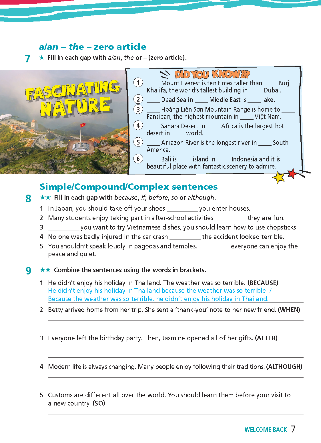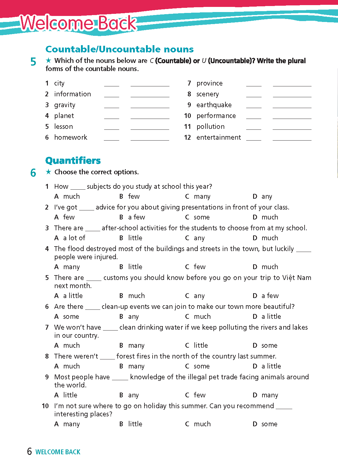 Answer Key Tiếng Anh 9 Right On (WorkBook) Welcome Back (Trang 4,5,6,7)