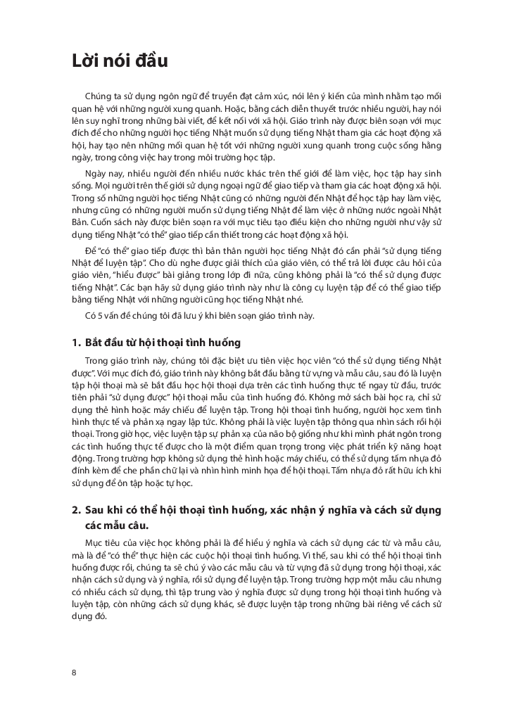- Giới thiệu tóm tắt tác phẩm: Giáo trình được biên soạn nhằm giúp người học giao tiếp bằng tiếng Nhật tốt hơn trong các hoạt động xã hội. Các tình huống học tập trong