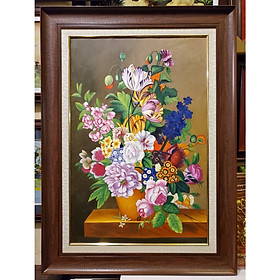 TRANH VẼ SƠN DẦU TĨNH VẬT BÌNH HOA CHẤT LIỆU TRANH ,VẼ SƠN DẦU TRÊN VẢI TOAN KHUNG TRANH MÀU VÂN GỖ COMPOSITE CAO CẤP KÍCH THƯỚC PHỦ KHUNG 82*112CM