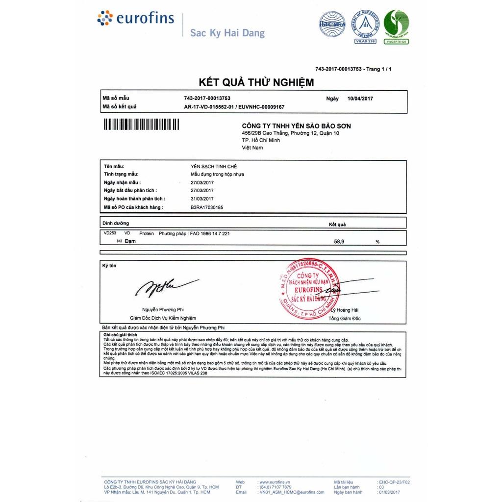- Chịu trách nhiệm về sản phẩm: CÔNG TY TNHH YẾN SÀO BẢO SƠN.