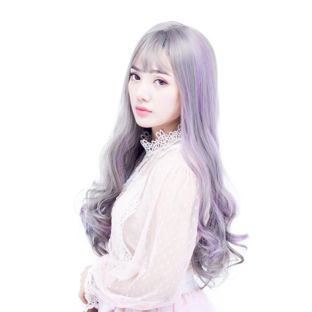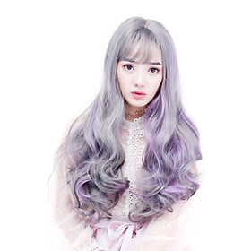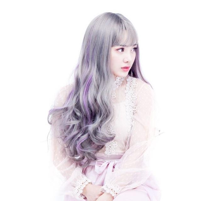 ✨Tóc giả xám line tím cao cấp- tặng lưới chùm tóc