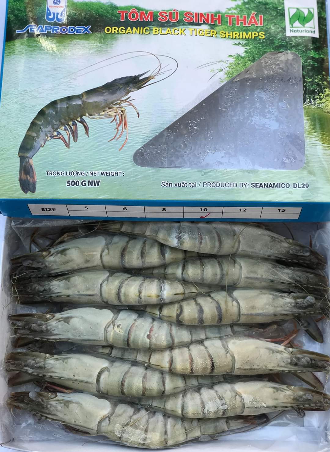 ✨Tôm sú nguyên con sinh thái Seaprodex kích cỡ 10 con/hộp, 500gr