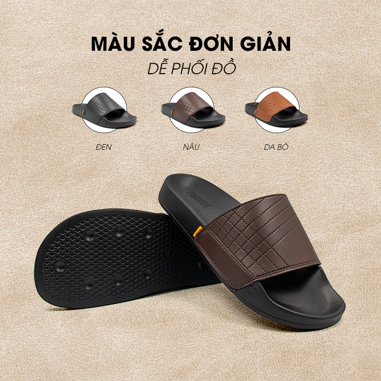 Dép Nam Cao Cấp Biti’s – Đẳng Cấp & Tiện Dụng  - Thiết kế: Quai ngang bản to, điểm nhấn logo kim loại tinh tế, mang lại vẻ ngoài sang trọng. - Chất liệu: Da tổng hợp mềm mại, bền bỉ, dễ lau chùi. - Đế dép: Cao 5cm, đúc nguyên khối chắc chắn, bám dính tốt, giúp tăng chiều cao tự nhiên mà vẫn thoải mái khi di chuyển. - Màu sắc: Đen nam tính – Nâu sang trọng, dễ phối đồ. - Phong cách: Phù hợp đi làm, đi dạo, hay những dịp thường ngày cần sự tiện lợi nhưng vẫn lịch lãm.  Một đôi dép – nhiều công năng: vừa tôn dáng, vừa êm ái, vừa thời trang.
