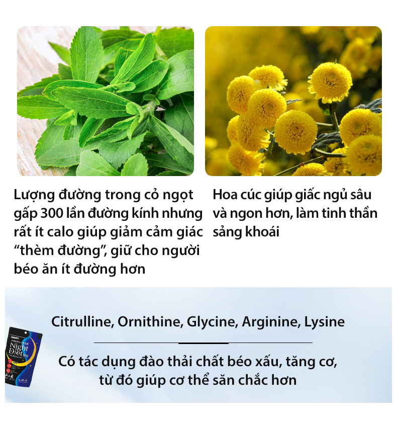 Công dụng chính sản phẩm - Tiêu mỡ lâu năm tích tụ ở bụng, đùi, bắp tay, bắp chân, - Thúc đẩy chuyển hóa, giải phóng năng lượng ngay lúc bạn ngủ, giúp tiêu hao