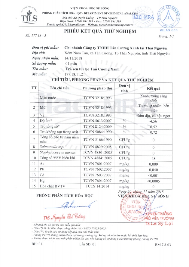 - Trà nguyên liệu là trà búp tôm Tân Cương (Thái Nguyên) là vùng trồng trà xanh ngon nhất Việt Nam hiện nay. Trà được ướp hương sen đạt đầy đủ tiêu chuẩn VSATTP.