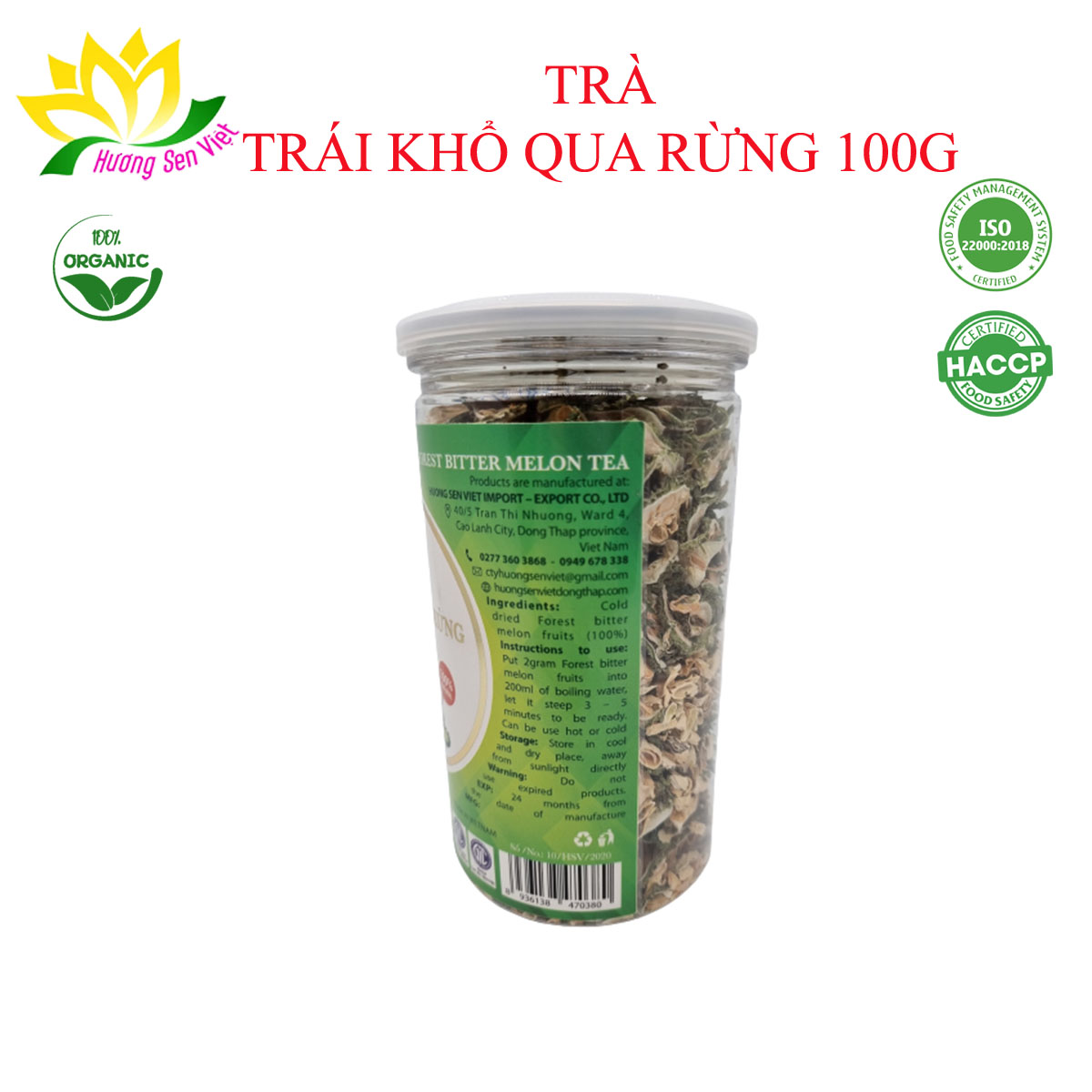 Trà Trái Khổ qua rừng (còn gọi là trà mướp đắng rừng) được chế biến từ Khổ qua rừng tự nhiên. Khổ qua rừng được sử dụng công nghệ sấy lạnh giúp giữ được màu sắc và dược tính của sản phẩm, đảm bảo vệ sinh an toàn thực phẩm. Mỗi ngày có thể sử dụng một ít Trà Trái khổ qua rừng để làm trà uống hàng ngày, tốt cho sức khỏe.