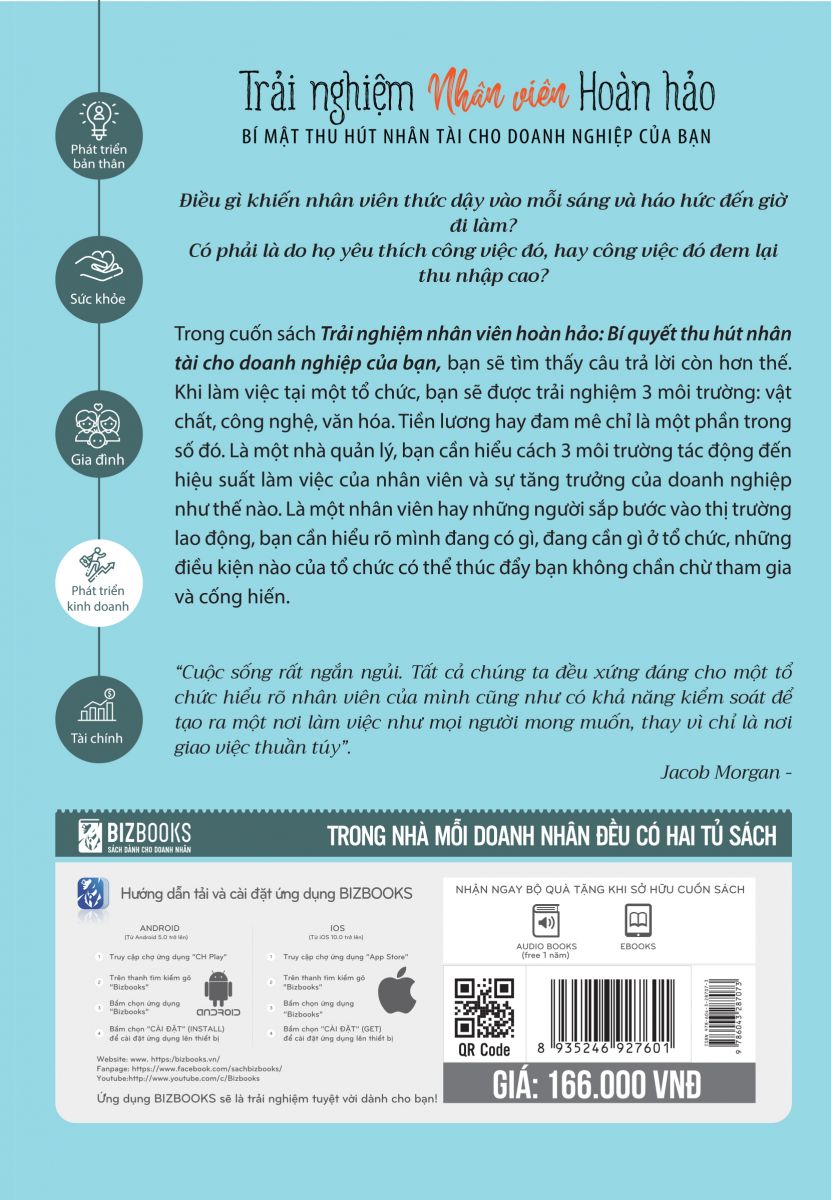 Cuốn sách Trải Nghiệm Nhân Viên Hoàn Hảo - Bí mật thu hút nhân tài cho doanh nghiệp của tác giả Jacob Morga – Chuyên gia huấn luyện nhân sự sẽ chia sẻ những kiến thức, kinh nghiệm quý báu về TRẢI NGHIỆM NHÂN VIÊN của ông qua việc nghiên cứu hơn 150 công ty, tập đoàn lớn trên thế giới như F.acebo.ok, Apple, Adobe, Microssof…