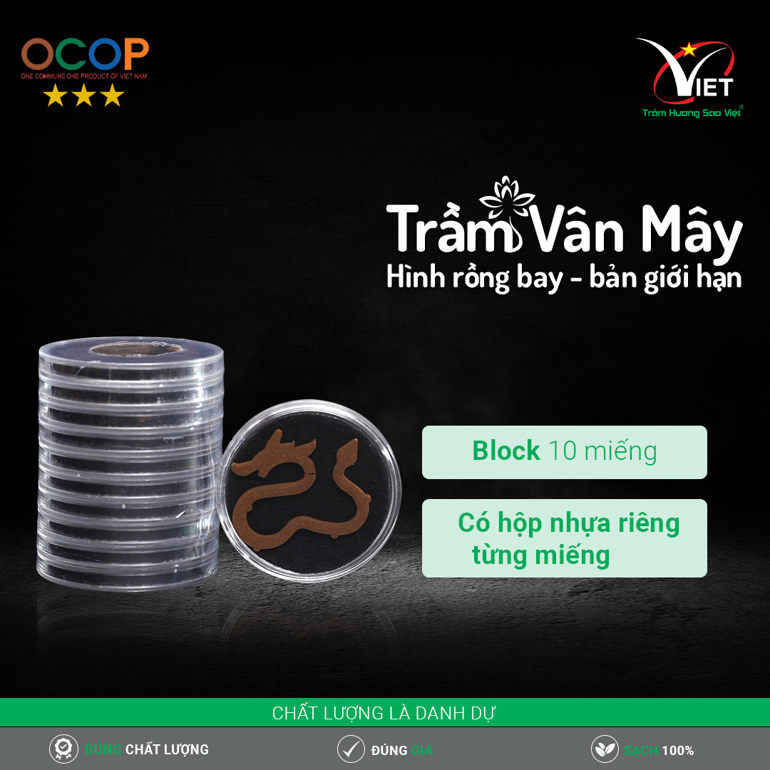 - Có giá cả hợp lý, phù hợp với túi tiền của người tiêu dùng Nên sử dụng trầm vân mây hình rồng khi nào? Trầm vân mây hình rồng có hình dạng rồng uy nghi, cuộn mình giữa những tầng mây bồng bềnh, mang giá trị thẩm mỹ cao. Mà trong văn hóa Việt Nam, rồng là một trong tứ linh, biểu tượng cho sức mạnh, quyền uy, may mắn và tài lộc. Do vậy, sản phẩm này rất thích hợp để sử dụng trong các dịp lễ Tết, cúng bái tổ tiên, thần Phật hoặc trong các buổi tiếp khách để tạo bầu không khí ấm cúng, sang trọng. Ngoài ra, nhang trầm còn được sử dụng trong phòng khách, nơi làm việc, phòng ngủ để tạo cảm giác bình an, thanh tịnh. Trầm hương Sao Việt với bề dày kinh nghiệm 10 năm sản xuất trầm hương. Với phương châm: Chất Lượng Là Danh Dự. Chúng tôi tự tin đem đến cho bạn những trải nghiệm tuyệt vời nhất khi sử dụng nhang trầm hương.