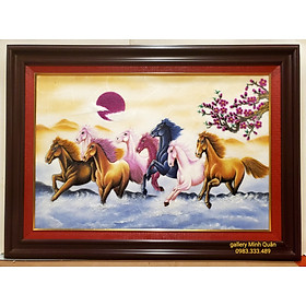 Mua tại TiktokTranh đá Quý ,MÃ ĐÁO THÀNH CÔNG- BÁT MÃ QUẦN THỦY Sản phẩm được chế tác 100% bằng đá quý tự nhiên Khung tranh màu vân gỗ composite, nhẹ, chống mối mọt bền đẹp