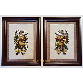 Chất liệu giấy dó phủ điệp vẽ tay bằng màu nước tự nhiên Khung màu nâu vân gỗ composise nhẹ, chống mối mọt, bền đẹp. Mặt tranh lồng kính hoặc mika