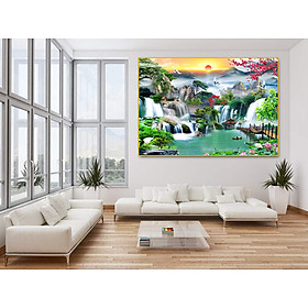Tranh treo tường tráng gương thác nước hùng vĩ dưới ánh trăng - Kích thước của tranh : Kích thước : 35x70cm 45x90cm 55x110cm 60x120cm - Chất liệu : Mặt mica sáng bóng (không phải