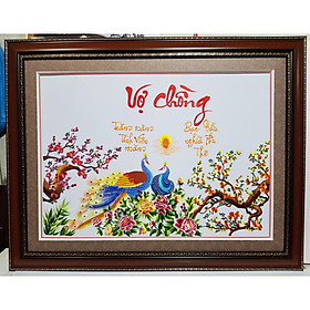 ✨Tranh thêu đôi chim công chữ thư pháp -Vợ Chồng