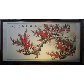 Mua tại TiktokChất liệu tranh thủy mặc Hoa Đào được vẽ mực tàu nước giấy xuyến , bồi viền tranh bằng vải gấm,