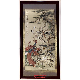 Chất liệu : Giấy xuyến chỉ, màu nước , viền tranh po bằng vải gấm.